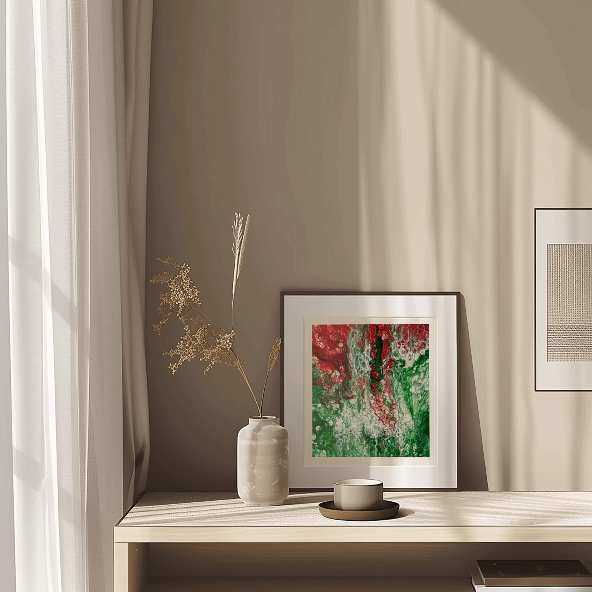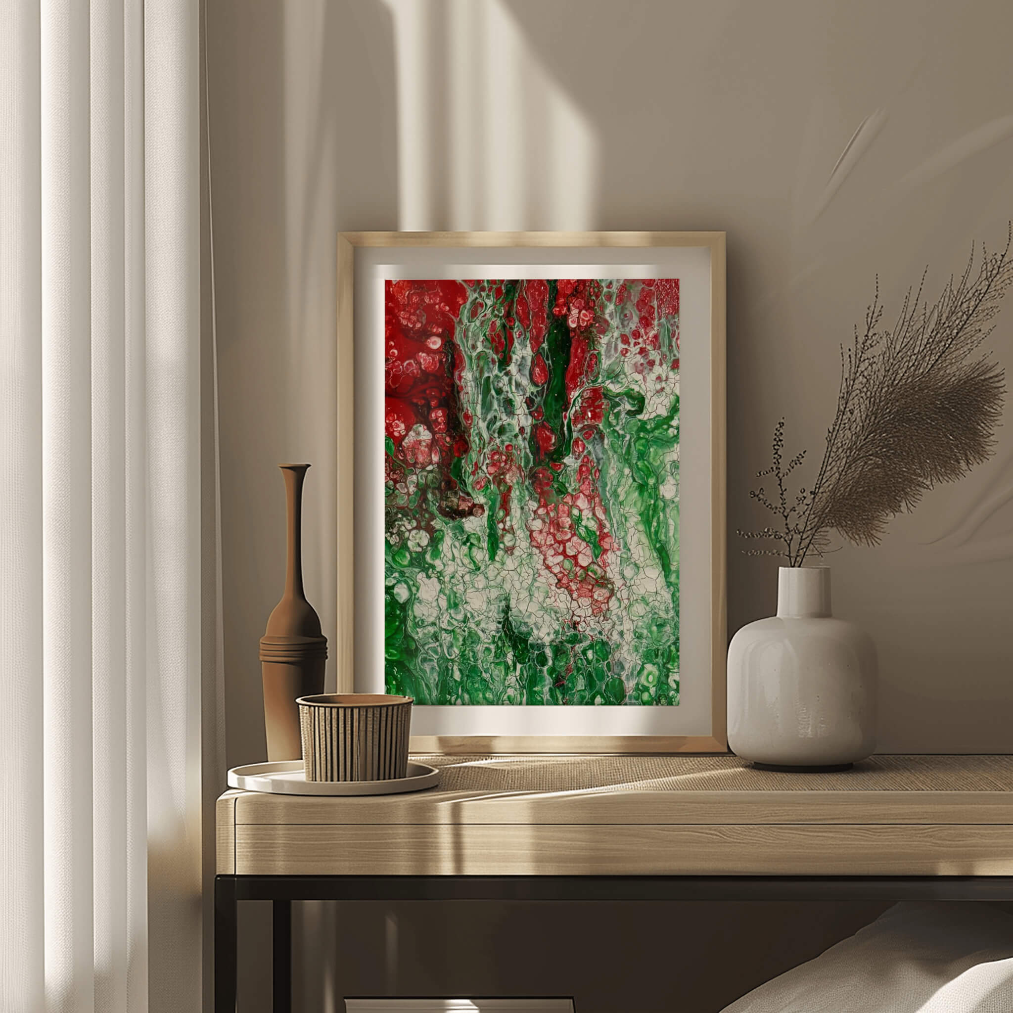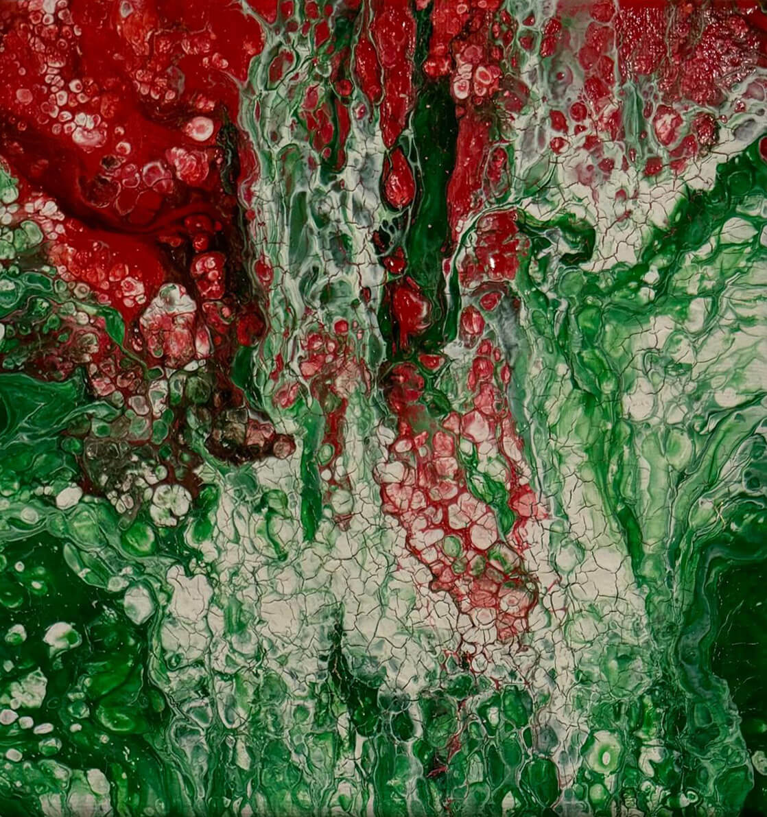 Blossoming Explosions evokes the fierce vitality of nature in bloom, where emerald rivers collide with crimson veins, pulsing with the energy of life and decay intertwined. The painting feels alive, as though roots and petals are emerging through layers of liquid motion.