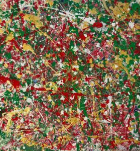 Holiday Celebration bursts with the joyful spirit of the festive season, filled with lively splashes of red, green, white, and radiant gold. The colors intertwine and collide across the canvas in energetic motion, echoing the excitement and warmth that define this time of year. Bold gestures and vibrant drips create a dynamic surface, inviting the viewer into a world that feels bright, bustling, and alive with celebration.